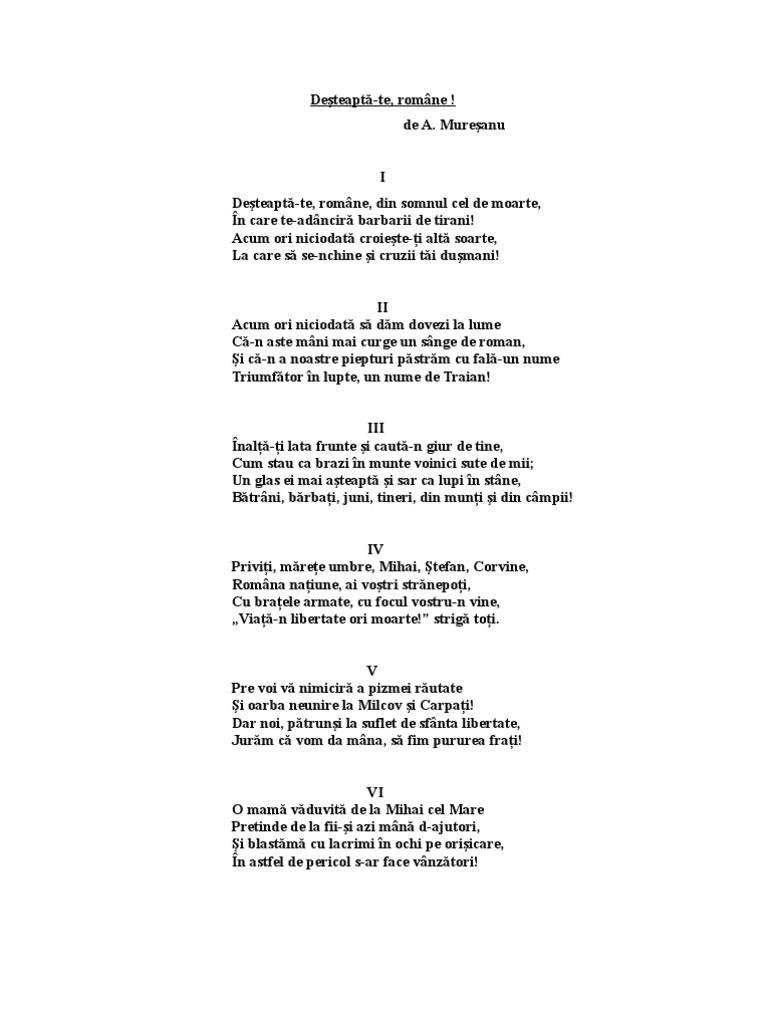 Da, adevaratul imn turistic al romaniei. La ocazii festive se interpretează strofele 1, 2, 4 şi 11. Sânge, barbari, tirani, etc., împrospătează spiritul agresiv care se poate reflecta nu numai în comportamentul public, colectiv. În actuala constituție, anton pann este autorul creditat al muzicii imnului național al. 3) in actualul text al imnului național al româniei, cuvinte precum: