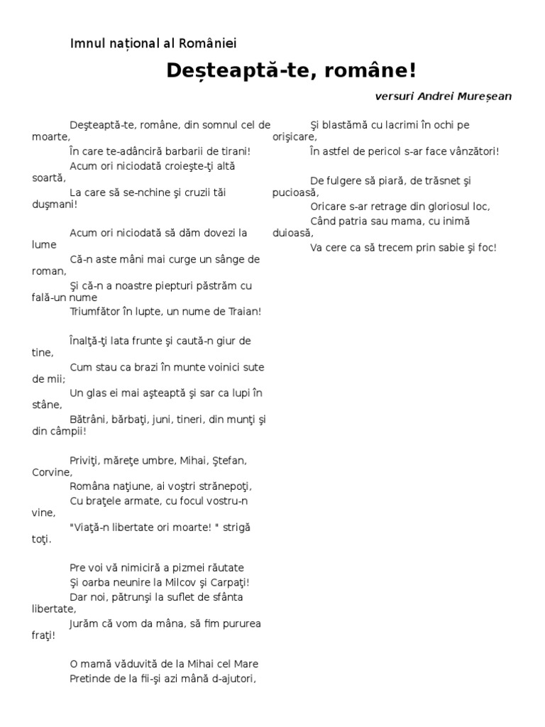 Conform art.12 al.3 din constituţia româniei. The original text was written in the romanian cyrillic alphabet. Da, adevaratul imn turistic al romaniei. Pe lângă acest imn, românii mai au hora unirii, scris în 1855 de marele poet vasile. Aici alegem noul imn al româniei cu respect și demnitate #100anirenaștem.